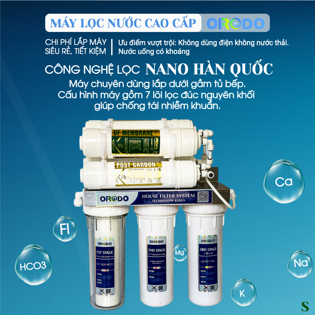 Máy được thiết kế gồm 7 cấp lọc chính, dựa trên ưu điểm công nghệ lọc Nano - UF của Hàn Quốc áp dụng cho nguồn nước cấp đã qua xử lý như nước máy. Giúp cho khách hàng có thể tiếp cận được Máy Lọc Nước ORODO cao cấp giữ lại khoáng chất, mà không cần sử dụng các lõi lọc chức năng bù khoáng.
